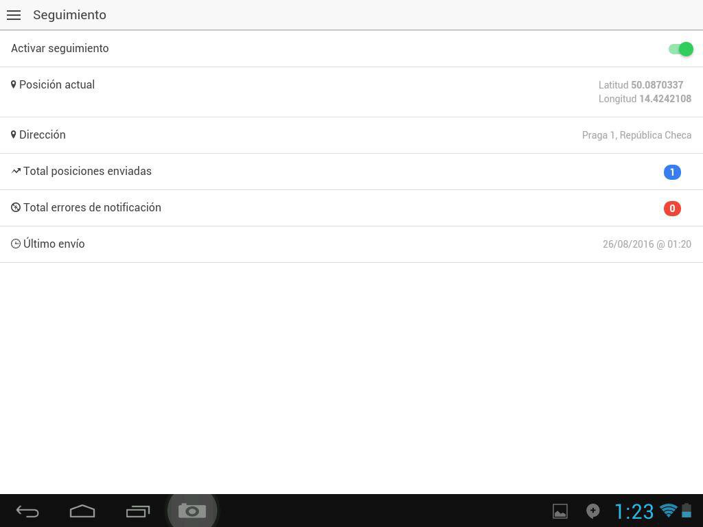 In the monitoring screen ("Seguimiento") slide the button (it turns green) and you're done. The application will send your position to the bot during the period and as often as you indicated. You can stop at any time. You will notice that your location is changing in Qwasapbot (if you're moving), which you can verify sending /info.